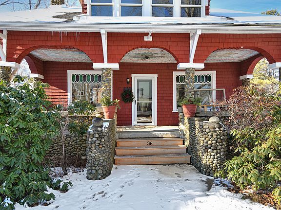 The Maurice Royal House, circa 1913. This charming craftsman bungalow has distinctive detailing, pleasing proportions, and updated modern comforts. Situated on a large lot in a quiet neighborhood, it has ample backyard space, a large garden, apple trees and berry bushes, and spectacular natural lighting. Fieldstone porch pillars and chimney, wide eaves, elegant natural woodwork throughout, large windows, granite countertops, and refinished hardwood floors lend to a sophisticated yet homey feel. A newly renovated kitchen, bath, and great room create a semi-open concept that strikes the perfect balance between spaciousness, functionality, and coziness. The 500 sq. ft. super-insulated family room is full of possibilities and is visually striking with solid red birch flooring, hand crafted ash window stools, and glass pocket doors connecting to the kitchen. Insulation, air-sealing, and ventilation upgrades, along with two high efficiency heat pumps and the option to run a pellet stove and/or the hot water baseboard make for warm, resilient, and cozy winters and cool summers. This house has character, craft, and comforts that are hard to find! This is a unique and fabulous home. It has 1290 sf on the first floor and 870 sf on the second floor for 2160 sf total.The spacious kitchen is 17.2 x 13.10 and the family room is 19.7 x 26.10 . The first floor has stained glass windows that overlook the dramatic front porch that is 28.2 x 7.1 a dream to relax on. The upstairs has a sitting room -tv office area that is 13.10 by 8.4 a large hall that has a heat air pump and three bedrooms. This in town location is ideal with a nice neighborhood with sidewalks ye only 4/10 mile to interesting and fun Gardiner main street and the waterfront on the Kennebec River. The lot is level and inviting and a 10x 12 Vinyl outbuilding to store your stuff . This is a double lot with frontage on Plaisted street and Clinton street . A full Materport tour is available to see the whole house !