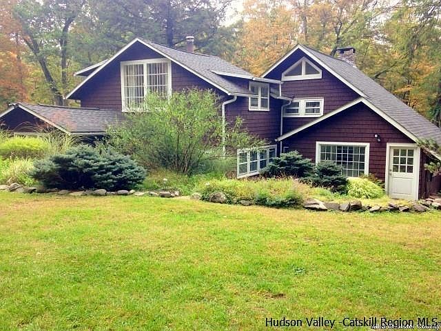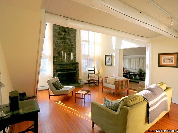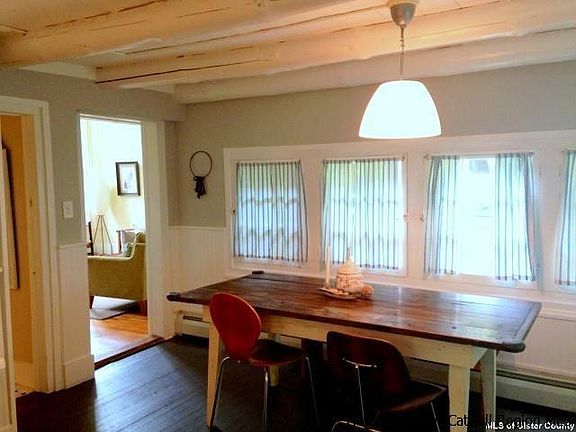 Beautiful walk to Woodstock home, renovated and well maintained with cook's kitchen, hardwood floors, cathedral ceilings, exposed beams, and stone fireplace. First floors has kitchen with gas stove, dining area, living room, den, and bedroom with attached bath. Second floor has master bedroom with attached bath, cathedral ceilings, and floor to ceiling artist windows overlooking rear gardens. Home is privately sighted off quiet country lane, on 2.5 park like acres with lawns, gardens, ornamental trees, deck and old stone walls. Walk to Woodstock Village for shopping, dining, hiking, theater, and NYC bus stop. You don't need a car!