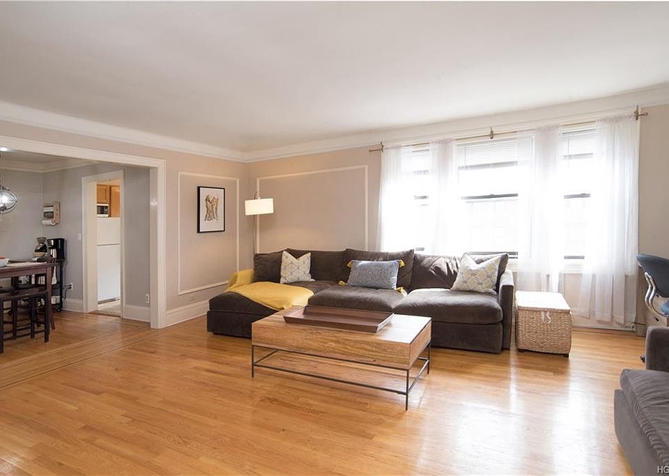 Step into the serenity of this luminous and spacious 1,150 square foot apartment. It offers an elegant living area with hardwood flooring, crown moldings, a separate dining area and two generous sized bedrooms. This well-maintained elevator building is a commuter's dream. Located at walking distance to the charming downtown Bronxville, train station, restaurants, shops and supermarket. Dogs allowed with pet deposit. Resident parking is available at Garrett Lot for $25/year. Star reduction $1,207/yearly. Come make this home yours!
