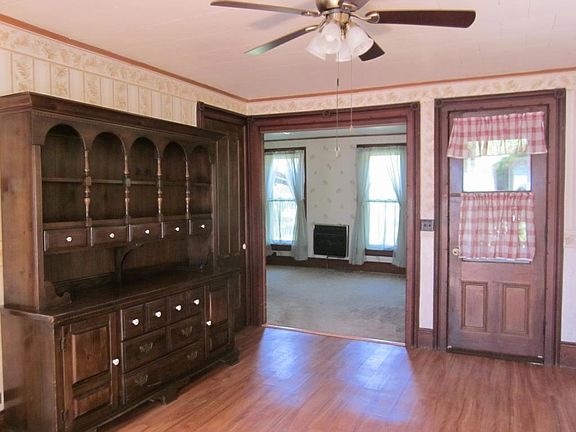 Warm and Welcoming 3 bed, 2 bath home on 1/2 acre lot in town. Some original features still remain such as beautiful wood trim & hardwood floors. First floor has office that could be 1st fl. bedroom. Spacious kitchen, formal dining room & large living room. Two covered porches & carport. Very nice side yard! Updated windows throughout. House needs some cosmetic updates but seems to be a very solid house & has a nice layout. Main roof updated 4 yrs ago. Bay window roof replaced a few weeks ago. Natural gas heat, public water & septic. Very nice setting.