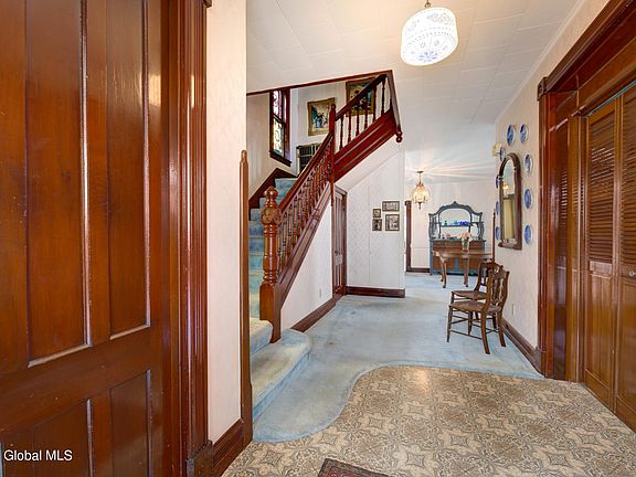 The price was improved. This 5-bedroom home features a two-car garage, the roof is about 5 years old, the hot water tank and boilers are in great shape, and the basement is dry and has a high ceiling. with quality and history. The best feature is the open-concept gourmet kitchen and the sunroom. It flows from space to space and is excellent for gatherings or entertaining. 45-minute drive to Saratoga Springs and 20 minutes to Southern Adirondack State Park. The owner asks for showings for pre-qualified buyers only. The seller is related to the listing agent.