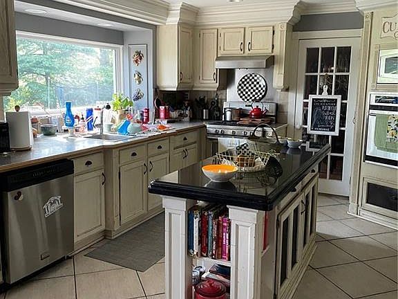 This home has a lovely layout but is sold strictly "As Is". The home features a ample sized kitchen with opening to family room with sloped ceilings and fireplace. Laminate floors in family room, tile floors in kitchen. Hardwood floors in LR, DR and bedrooms. This home has 4 bedrooms but walls were removed on one bedroom and washer dryer were placed in the closet of that bedroom. Walls can easily be put back to its original state. The basement is finished with a full bath. There is a deck and built in barbeque in the back and Koi pond. CCO is the responsibility of the buyer