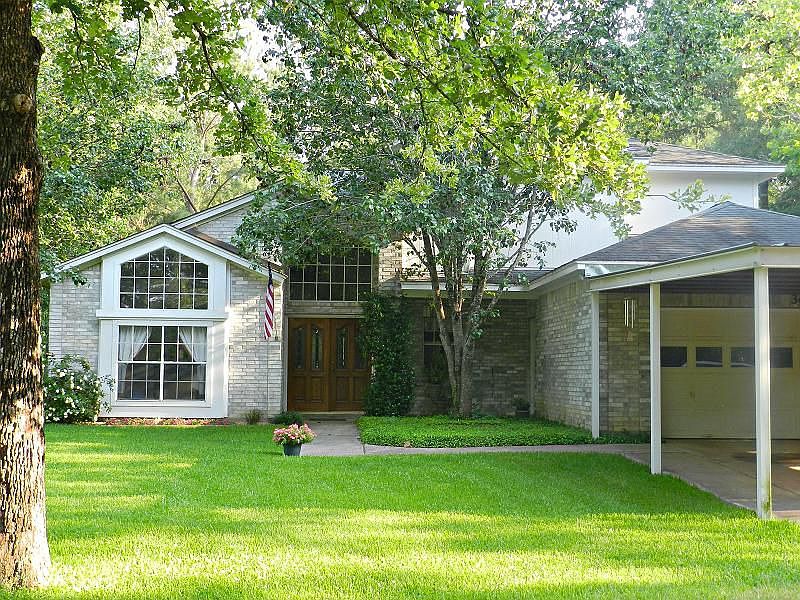 Great home on 11 acres. New Waverly ISD. Tucked in the trees, 3 bedrooms, 2 1/2 baths, two living areas, study & really super kitchen. Granite counter tops, lots of high ceilings and huge windows. Tankless water heater, security system, aerobic septic, sprinkler system, 30x60 shop on slab w/ ac, 1/2 bath, potting shed, garden area, pond. Garage is insulated w/ attached carport. So much to offer and in beautiful condition!