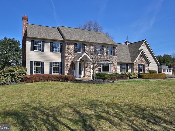 This is a family home and an entertaining home in a large lot neighborhood. Sitting on 1.347 acres with a large rear vista. With attached and detached garages! Where do I begin? Remington Place is a loop road creating a 27 Lot neighborhood with no thru traffic. Lovely spacing between the homes. This home offers flexibility for extended family living like few others. The second floor has 4 bedrooms and two exquisite baths (new in 2017) along w a 5th BR (enormous at 16 x 32) that can be a small suite which, while accessible to the rest of the second floor, can also be private w it's own staircase, closet and full bath (the third on this level). All BRs are large with high ceilings in both the Owner Suite BR and Bath.The first floor has all the traditional rooms: LR & DR along with an office (24 x 12) w outside entrance and its own PR, a Family room w vaulted ceiling, 2 FPs, and a 26 x 14 rear unheated, tile floored three season room w windows and screens and recessed lights and baseboard and crown molding and a bead board ceiling. The living and entertaining spaces continue outside. From the three season room take the paver walkway to the paver patio and on to the 23 x 42 in ground, heated concrete pool w spa w concrete surround and wonderful landscaping boulders and landscape walls. There is an above ground propane tank for the pool heater which is Leased from Blue Flame. Buyer will take over that Lease which means you will buy Propane from Blue Flame and they will service the tank and nozzles. Along w a 2 car attached garage you will find a delightful 22 x 36 detached garage finished in the same stone front and vinyl siding found on the main home. The space is drywalled. The garage has inside parking for 3 cars and a storage room for pool play things w a separate entrance. It also has storage above accessed by a set of pull down stairs. The attached garage has a rear set of stairs that provide a second access to the basement. Details inside the main home include a