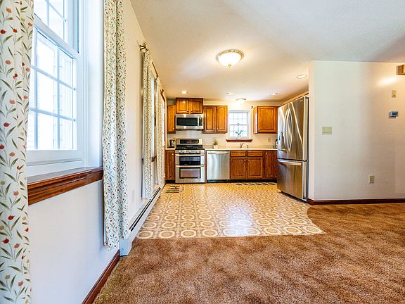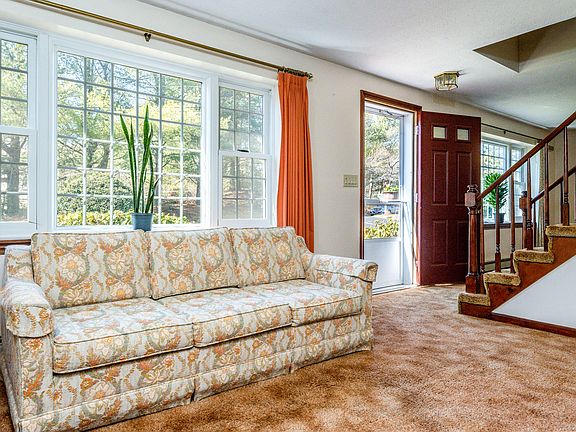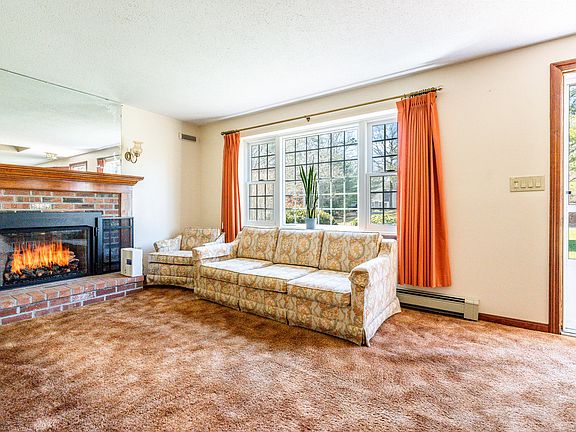Whistle Clean - charming home in a great location. First floor offers nicely updated Kitchen with Stainless Steel Appliances, comfortable Living Room with Gas Fireplace, ample Bedroom, and Full Bathroom. Carpeted Entry Breezeway between Garage & House. Second floor offers two additional good size Bedrooms and updated Full Bathroom. Finished walk out Lower Level with Family Room/Office/Bonus Room with Fireplace and Sliding Door to pastoral Backyard. Pride of ownership throughout: Andersen Renewal windows with stainless steel screens, retractable SunSetter awning on the deck, new plumbing fixtures, 10 kW generator in 2022, roof in 2010, Boiler and Water Heater in 2015, exterior paint 2018, new garage door opener, Irrigation, large Outside Shower, newer cobblestone-trimmed Paved Driveway. Solar panels cut electricity cost in half. Quiet backyard abuts a little stream and conservation acreage. Well-kept home on a quiet cul-de-sac.