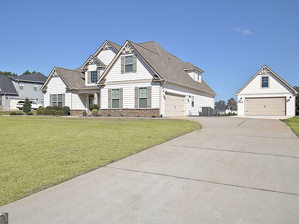 Elegant, extra-spacious, 5 bedroom, 4 1/2 bath home offers an ideal layout for comfortable living and entertaining. A newly constructed, detached, garage provides additional storage along with extra parking, and an expansive unfinished upstairs area. **The home's thoughtful floor plan includes a dedicated office with valuted ceiling, a mudroom at the garage door entrance, a vast living room with a wood-burning fireplace, a big bright breakfast area, and large kitchen featuring a dream walk-in pantry, plentiful cabinets, and an island with extra storage (refrigerator remains). Granite and a new brick backsplash elevates the kitchen.** Cozy screened porch with electric fireplace, and expansive patio area (grill remains) provide opportunities to relax with friends and family, while enjoying the privacy of a little more than one acre of open land. Upstairs, you'll find four bedrooms, including two en-suite bedrooms. One bedroom is currently used as an exercise studio. Abundant natural light throughout the home. Located in the lovely sidewalk neighborhood of The Reserve at Senoia, near historic downtown Senoia with shopping, dining and community events. **The current owners invested in easy-care landscaping materials, and many updates. Freshly painted inside and out, new landscaping, new concrete connecting paths to house from new garage, new microwave, dishwasher and stove. List available.** If you do not have a signed Buyer Brokerage Agreement, our Buyer's Agent, Christina Caron 706-455-8741, will be happy to work with you, or call your Buyer's Agent for an appointment to see this beautiful home. A mortgage pre-approval or proof of funds is required for all showings. **Spectrum TV provides internet**