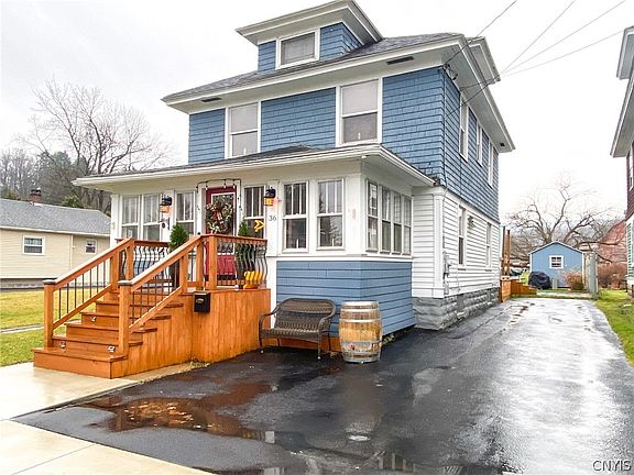 Here is a 3 bed 1.5 bath village home on a large double lot. Sun filled porch leads to a welcoming foyer/family room. An open living/dining room with a pass through to an updated kitchen. Sliding glass doors open to a deck and above ground pool. Additional deck off master bedroom that features a whirlpool tub and huge walk in closet/ dressing room. This home features laundry on the first floor, the list goes on and on...