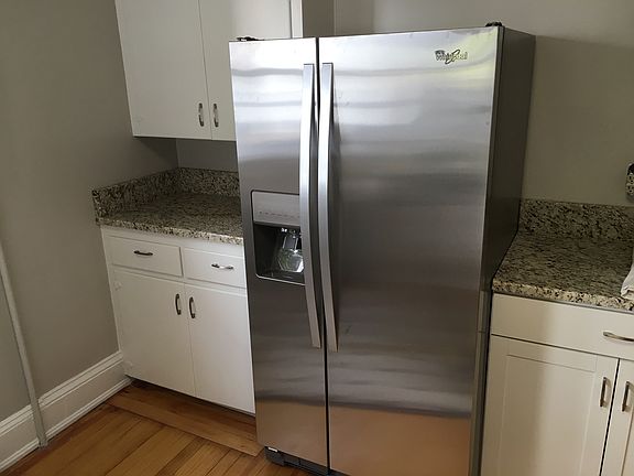Walk to train/town! One off street parking spot designated for tenant. Beautifully clean and charming. Just updated kitchen and bath, with cabinets, granite and new stainless steel appliances. Hardwood floors throughout, fireplace (nonworking, however, a beautiful focal point for candles) and accent dark wood beams in the ceiling. This place has SO much charm, must see to appreciate. Two months security. Heat and water included in rental amount. One off street parking spot is assigned to tenant.