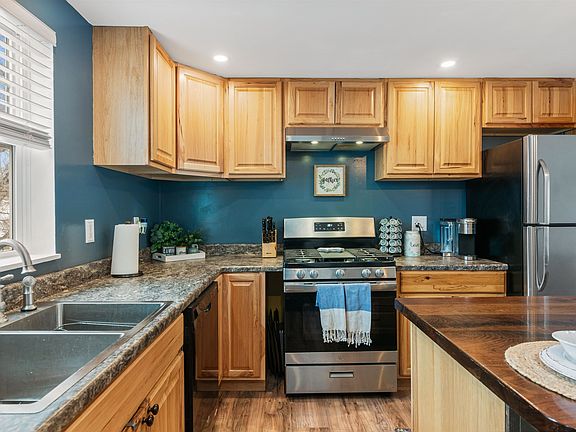 Rare opportunity to own an end unit condo in the quaint Hollow Creek neighborhood. Enjoy the ease and convenience of condo living, with the privacy this home provides by being an end unit, that is only attached to the neighbor by the garage! Enter the home from the front door and into the entry hallway. You'll immediately notice the open layout that is filled with natural sunlight, and fresh paint and new flooring throughout. The recently renovated kitchen boasts natural wood cabinets and stainless steel refrigerator, microwave and gas cooking range - all timeless finishes. A large kitchen island features bar seating. The kitchen flows into a flexible dining space and then into the spacious living room, which provides access to the back deck. An updated 1/2 bathroom completes the first floor. Upstairs reveals two expansive bedrooms with ample closet space. A shared renovated full bathroom is located between the two bedrooms. The full basement provides plenty of storage and rec space, plus a separate utility room with laundry. The attached garage enjoys direct access into the home, and has additional storage space above it. Outside, enjoy strolling through this lovely neighborhood. The common land is perfect for running and playing, and close to the rec paths. Located just minutes to Colchester town amenities. Within 10 minutes to Winooski and Essex Town, and Burlington is only 20 minutes away.