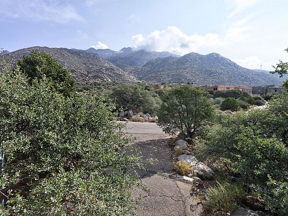 Exclusive Sandia Heights North view home across street from natural preserve - for the forever mountain view. Mountain / city view from living room, bedrooms, hallway, balcony. Living room with high vaulted ceiling, two way fireplace, views of mountain and city. Three view balcony. Private balcony off master bedroom. Master bath with steam shower, separate tub. Updated kitchen w/corian counters, new appliances - oven, dishwasher, cooking range, and a bundle of storage cabinets. Laundry room with build in utility sink. Baseboard heating for comfort. Downstairs guest suit with large family room, pellet stove and a private bath. Large oversized garage with build in storage. Large 19' x 15.5' workshop/studio w/ full bath, 220V outlet, plenty windows for natural ight, perfect for hobby