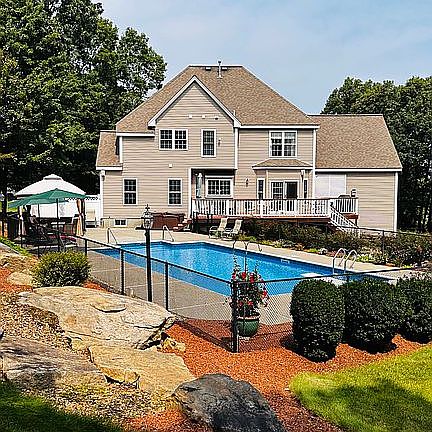 2% Buyers Agency Fee - Home viewings by appointment. Contact seller Tranquil Oasis in an ideal neighborhood – This Charming colonial truly has it all! Nestled amidst a picturesque landscape, this enchanting 4-bedroom, 2 ½ bath house is located in the desirable Rocky Woods neighborhood of Hopkinton. The open-concept living area has an abundance of natural light featuring a thoughtfully designed kitchen with granite countertops, a wrap around a breakfast bar, convenient dining table and serving counter/bar when entertaining. A spacious formal dining room for those special occasions. The expansive family room includes floor to ceiling built in book cases on both sides of a cozy fireplace. Even a game room with top-of-the-line pool table, darts, and a TV to watch the game while playing games. And a private office with large windows for extra natural light. You’ll enjoy a Master Suite with large tray ceiling, Jacuzzi spa/tub, double sinks, granite counters, and 20 Ft. walk in closet. Plus 3 other bedrooms all of good size for the kids who will share a second bath also with granite tops and double sinks. The basement level opens up to a sizeable room for exercise equipment, a play room, or even a second office. It wraps around the entire foot print of the house for another living room and separate storage area. Finally, you’ll step into your own private sanctuary as you walk out onto the expansive backyard. Mature trees provide a canopy of shade, creating the perfect spot for morning coffees or evening barbecues with loved ones. An oversized deck with separate 10 x 12 cooking/grilling station overlooks the In-Gound Pool, top of the line Sundance spa/hot tub, and extremely private yard lined by wooded conservation land. Perfect for outdoor relaxation and gatherings! This property offers the rare combination of quiet living while still being close to all the amenities, nearby parks, local shops/restaurant , and enjoy convenient access to major highways for easy commuting. Simply enjoy this peaceful neighborhood with low traffic and friendly neighbors! *** 2% Buyers Agency Fee