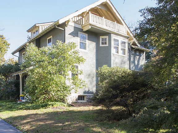 Built circa 1905 in the historic arts & crafts community of Rose Valley, the house at 36 Rose Valley Road retains its original character while offering amenities for comfortable, gracious modern living. Designed by John Bisseger, Rose Valley Shops furniture designer and draftsman for architect William Price, this unique home incorporates elements of the chalet style of Bisseger's native Switzerland into the community's arts & crafts aesthetic. This 5-bedroom, 2.5 bath home is set on a .52-acre lot amidst mature trees and exuberant gardens. Walking trails provide Rose Valley residents with access to town features like the Rose Valley Swim & Tennis Club, Hedgerow Theatre, the School in Rose Valley, and the Rose Valley Museum. The Moylan-Rose Valley SEPTA station is less than 1/2 mile away; for those who work at home, this house provides a home office with its own porch. The design provides great connectivity between indoors & outdoors with a front door and small porch. a rear door from the driveway into the mudroom & laundry area, another door from the kitchen/dining area to a backyard terrace, and the side door from the large covered porch. The current owners completely reconfigured the back of the house in 2008, creating a large, open-concept kitchen & dining area. A series of windows face north, east & south, flooding the rooms with light through most of the day. A bench (with storage beneath) provides seating at the dining table. The renovated kitchen provides ample storage in the custom cherry cabinets with a large breakfast bar open to the dining room. Beautiful soapstone counters and a creative Mercer tile backsplash add color & energy to the space. A 5-burner gas range anchors the main wall. From the kitchen, one accesses the staircase & living area (great for entertaining & circular flow) or the rear mudroom, which has a renovated powder room, washer & dryer, and a walk-in coat closet with a window. The living room has a smaller nook with an arched, cased opening. Now set up as a music room, it could be a cozy space for the TV or other uses. On the west side, a window seat provides seating with storage beneath. The unusual, original Rumford fireplace anchors the room, with a large storage closet to its left. On the 2nd floor, 4 bedrooms occupy each corner; two of the guest bedrooms have 2 closets & the 3rd has a walk-in closet. A renovated hall bathroom to serves the guest bedrooms. The owner's suite is connected to one of the other bedrooms as well as the main hall. There are two large closets within the bedroom itself, as well as a 3rd walk-in closet within the en-suite bathroom. With a vaulted ceiling and 7 windows, it's flooded with light in all seasons. A jetted tub and separate shower occupy one wall while the walk-in closet, sink and privy room complete the bath. On the 3rd floor, the 5th bedroom overlooks the rear yard and has multiple windows and storage within the eaves of the roof lines. The final room is the surprise worth waiting for: the perfect space for your home office, with the best view in Rose Valley from the chalet porch out front. In addition to the balcony, the 3-story balloon framed structure is highlighted by detailed barge boards along the West wall with carved details attributed to Rose Valley artisan John Maene. Set back and elevated from the road, the house is surrounded by lush evergreens and specimen plantings that provide four seasons of interest. A large and level side & rear yard provide great space for outdoor entertaining & play. An original 1-car carriage structure remains tucked into the rear corner. While currently used for storage, it could be restored for a vehicle, or the next owner can expand to a larger 2-car garage: the current owners obtained a zoning variance to construct such. Those building plans and the variance transfer to the new owners. A large garden shed was installed in the rear yard, while raised garden beds provide the home chef with vegetables & herbs. 2021-01-24