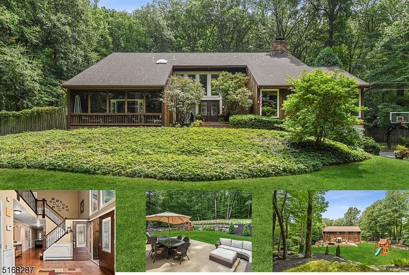 THIS IS NOT A DRIVE BY...BEST PART OF THIS HOME IS THE ENTIRE INSIDE AND PRIVATE REAR YARD OASIS! SELLERS ARE HAPPY TO CLOSE ON SEPT 1ST SO BUYERS ARE IN FOR LABOR DAY WEEKEND AND THE BEGINNING OF ANOTHER AMAZING KINNELON SCHOOL YEAR!! SUPER COOL SOARING SUN-DRENCHED ATRIUM FOYER GREATS YOU WITH LIVING ROOM AND FRONT SUN PORCH. FORMAL DINING RM WITH TRIPLE CASEMENT WINDOW OF LUSH REAR YARD OPENS TO KITCHEN OFFERING BEAUTIFUL CABINETRY AND GRANITE DETAIL WITH CENTER ISLAND, 6-BURN WOLF COOKTOP/OVEN, HIGH-END SS APPLIANCES, SLIDERS TO REAR MAINTENANCE FREE DECKING AND BAR WITH BEVERAGE FRIDGE. A POWDER ROOM, OFFICE W/BOOK SHELVES AND MAGNIFICENT GREAT RM WITH SOARING CEILING AND W/B FIREPLACE COMPLETE THE MAIN LEVEL. RETREAT UPSTAIRS TO A ROMANIC MASTER WITH HIDDEN BED TV, DOUBLE DOORS TO LOFT OVERLOOKING GREAT RM WITH W/B BRICK FIREPLACE AND LUXURIOUS MASTER BATH WITH LINEN CLOSET AND LARGE WALKIN CLOSET! THE LAUNDRY IS IN CENTER OF UPPER STAIRCASE BRIDGE JOINED BY 3 MORE SECONDARY BEDROOMS AND A WONDERFULLY UPDATED BATH WITH VAULTED SKYLIGHT AND DOUBLE VANITYTHE 2-CAR GARAGE HAS NEWER GARAGE DOORS, UTILITIES ARE NEWER, NATURAL GAS, CENTRAL VAC, RADIANT HEAT IN KITCHEN/MASTER BATH...THE REAR YARD OASIS HAS MAINTENANCE FREE DECKING WITH ADDITIONAL SIDE/REAR DECKING/ENTRY INTO HOME, LUSH PLAY LAWN, OUTDOOR TV, COMPLETELY FENCED IN!!, AND SURROUNDED BY PRIVACY AND WOODLANDS IN THE DISTANCE...THE DEFINITION OF PEACE AND TRANQUILITY AWAITS!QUIETLY TUCKED AWAY ON THE ROUND HILL!