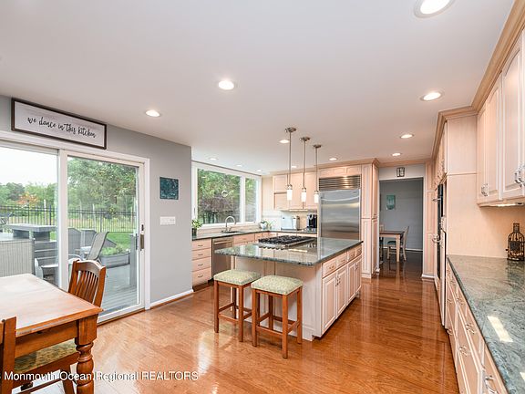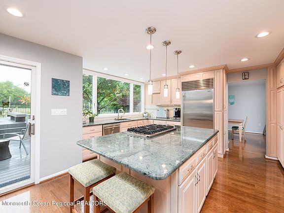 This stunning 3 bedroom, 2.5 bath home is located in a charming and highly sought after neighborhood. This well maintained home is perfect for entertaining family and friends. The fully equipped kitchen features an oversized island, granite countertops, marble backsplash, 2 sinks, stainless steal appliances including a Sub Zero refrigerator and Viking 6 burner range. The spacious family room has a wood burning fireplace for those chilly nights. Upstairs you will find a large master suite featuring 2 walk in closets, an ensuite bath w/ vanity, and a laundry room. The backyard is a private oasis w/ a sparkling pool and composite deck. This amazing property is on one of the nicest streets in Farmingdale. Don't miss out on the chance to make this move in ready house your forever home!