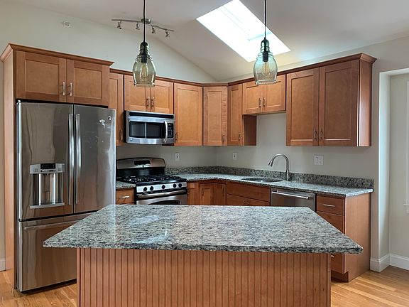 Lovely condominium rental in the heart of East Somerville. This third floor unit is flooded with light and checks all the boxes. Open concept kitchen/dining/living. Kitchen features beautiful maple cabinets, granite countertops, stainless-steel appliances, island with breakfast bar, and gas cooking. Large, master bedroom with en suite bath and walk-in closet. Second, smaller bedroom also with nice closet and second full bathroom with tub. Enter on second floor and marvel at the built-in bookshelves coming up the stairs. Remainder of unit is on the third floor. Amenities include high ceilings, gleaming hardwood floors, skylights, central air conditioning, and in-unit laundry. Shared yard, private deck & basement storage. Unit comes with 2 off-street parking spots. Tenants pay gas, electric, cable/internet and water in addition to rent. Pets negotiable for A++ candidates; 1 pet maximum. Unit comes with 2 off-street parking spots. Tenants pay gas, electric, cable/internet and water in addition to rent. Pets negotiable for A++ candidates; 1 PET MAXIMUM - NO EXCEPTIONS!
