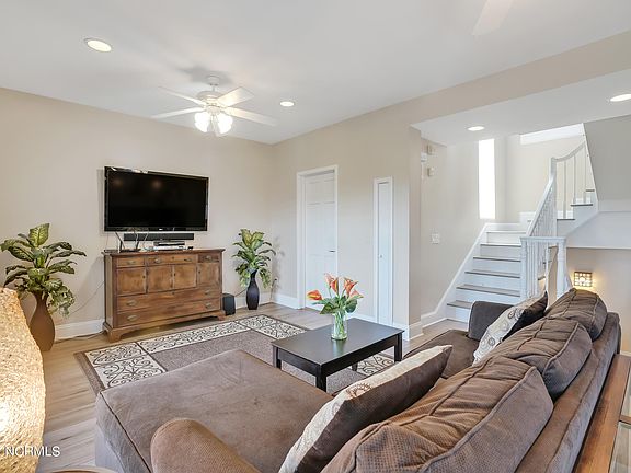 Living an exceptional coastal lifestyle, Figure Eight Island is the kind of exclusive experience savored by anyone looking for their own slice of paradise with ultimate privacy. With almost nothing but native plants and the ocean in sight, this flexible retreat home, with its multiple decks and patios, is flooded with light and views.Enjoy as is or easily customize to your perfection. Refined first level features include tranquil primary suite with fireplace, sitting room and spa style bath, family room with wet bar and pool table, bedroom, full BA, laundry room and a room perfect for a home office or overflow for guests.Top floor has an impressive airy great room with vast ceilings, exposed beams, fireplace flanked by built-ins, large deck, oversized dining room and sun room, an exceptional layout for entertaining. 3 bedrooms and 2 1/2 BA. Renovated kitchen with stylish tiled backsplash, newer appliances and deck, providing convenient outdoor dining.Only Steps to the community tennis and boat ramp, or a stroll out your walkway to the beach and take in the incredible smells and sounds only you can experience from Figure Eight Island. This is an amazing opportunity to indulge in beach living on a most coveted island oasis.