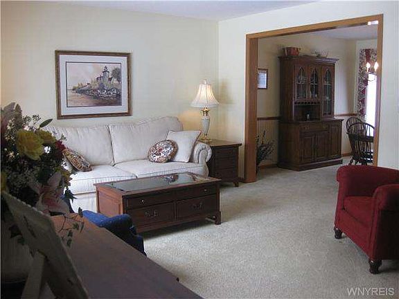 Fabulous 4 bedroom, 2 1/2 bath Colonial in The Meadows. Formal Living & Dining rooms, Family room w/ fireplace, slope ceiling & Juliet balcony. Large kitchen w/eating area that leads to wood deck with Kohler awning & fully fenced yard. Lovely, lush landscaping. Master suite w/cathedral ceiling. All bedrooms have ceiling fans. 1st floor laundry. Home freshly painted. Furnace '12, newer carpets & new kitchen floor. Rec room in basement with new carpeting and built in's. Tons of storage! Fantastic location! Walking distance to so many restaurants, stores, salons,post office, etc. on Transit Rd!