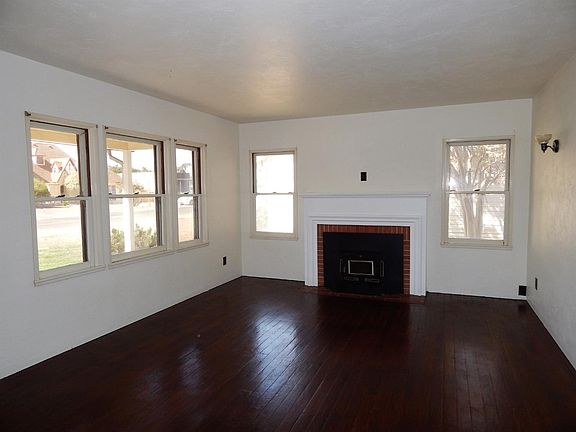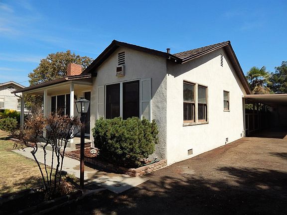 Charming home for Sale featuring 2 bedrooms, 1 bathroom with separate shower and bathtub, living room with a beautiful fireplace, dining room with built in cabinets for display or storage and a ceiling fan, kitchen with freshly painted cabinets, indoor laundry room, new interior paint throughout, new flooring in the bathroom, kitchen and laundry room, original hardwood flooring in living room, dining room, hallway and two bedrooms, all hardwood flooring has recently been sanded and stained, brand new roof installed in August, evaporated cooler serviced in August, front porch and all window frames have been painted, newly painted front door,large backyard with two covered patio areas, long driveway with a carport and detached 1 car garage! This is a great investment property! Check it out today!