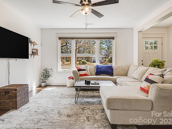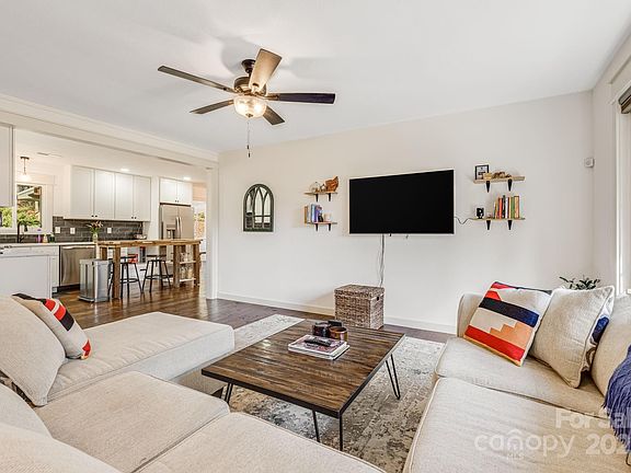This charming 3-bedroom, 2-bathroom home offers easy, one-level living on a quiet side street just off Hwy 64. Nestled in Etowah—perfectly situated between Brevard and Hendersonville—this home was fully renovated in 2024, including a brand-new roof! The inviting open floor plan features a spacious living room with large windows that flood the space with natural light. The updated kitchen boasts quartz countertops, stainless steel appliances, and an open layout that makes both cooking and entertaining a delight. Step into the sunroom, surrounded by lush greenery, and take in the expansive backyard lined with scenic trails—offering endless possibilities for relaxation and outdoor enjoyment. And keep an eye out for the area’s famous white squirrels!