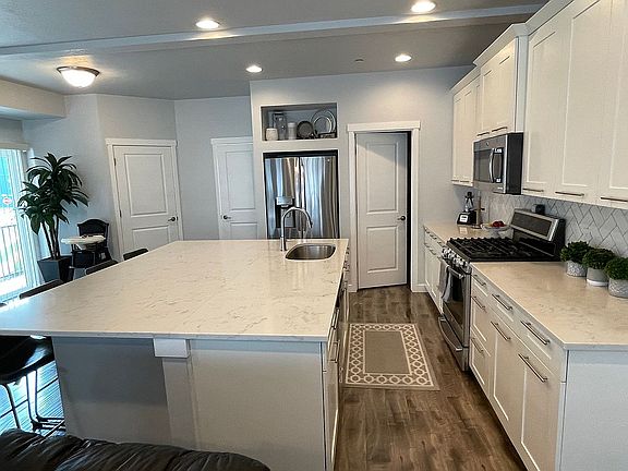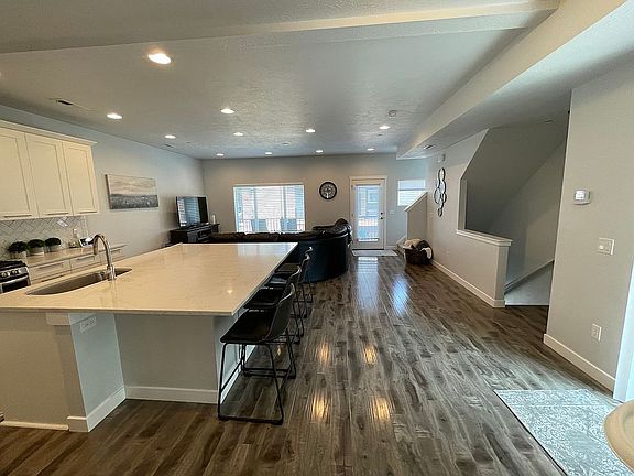 This is a three-level urban and contemporary-style home located just a short walk from shopping, restaurants, movies, and other entertainment options at Station Park. It includes a gourmet kitchen with stainless steel appliances (refrigerator not included), high-end countertops, and a huge center island which is perfect for entertaining. The family room features a balcony with mountain views. Flooring is wood look laminate, tile, and new carpeting. The popular Rio Grande Trail is immediately west of the home. Also has a neighborhood swimming pool. Home Features Approximately 1,902 Square Feet Master Bedroom includes Balcony with Mountain and Sunset Views Two Additional Bedrooms Two and a half Bathrooms Three Balconies Walk-In Closets in Master BR and One Other Bedroom Den/Office Laundry Room French Doors (Den/Office) Gas Range with Matching Microwave and Dishwasher New Refrigerator Upgraded Countertops Large Walk-in Pantry New Carpets New clothes washer and dryer Blinds Central Air Conditioning Natural Gas Furnace Water Softener Fire Suppression System The renter pays for all utilities consisting of electricity and gas, a $75.80 Farmington City monthly bill for water, sewer, and garbage, and a $100 HOA fee. Good credit is required. No smoking is allowed. No pets are preferred but pets are allowed upon approval of breed, pet deposit, etc. The lease agreement is for 7 to 10 months. Thus, the lease would end at May, June, July, or August month-end. July 31st or August 31st are the preferred lease end dates. Therefore, there would be a negotiated premium for ending the lease prior to July 31st.