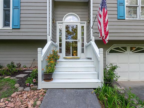 HUGE VALUE! UNDER MARKET PRICE Meticulously kept home on desirable lot w/private wooded back yard & great curb appeal. Incredible outdoor space w/low maintenance gardens, natural stone walk thru butterfly garden. Relax on covered back deck w/peaceful sound of the water fountain & views of gardens & wooded lot. Above ground pool can stay or go. Vaulted ceiling gives great open space fr living to kitchen & dining & to back deck. Master w/spacious spa like bathroom, separate shower & Jacuzzi tub. Basement finished w/bedroom, fitness room or man cave & large media room.