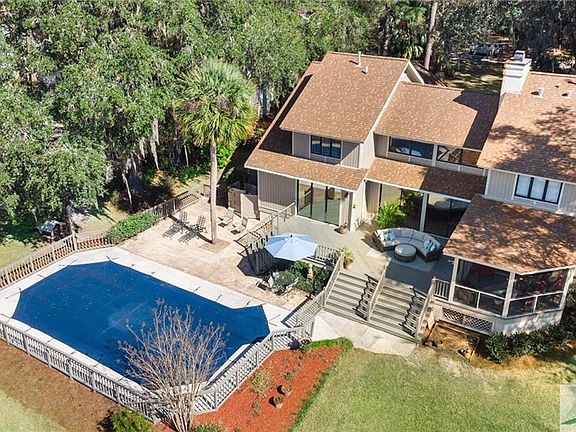 A Coastal Playground for the discerning homebuyer. Sweet Hill Creek, Salt Marshes, Lushly Landscaped grounds are the Setting for this Stunning Home. Perfect for entertaining or a Staycation! Oversized doors and windows open to the spacious deck, screen porch, and overlook the Waterfront, Salt Marsh, Inground Pool, Dock with Floating Dock. Kayak, Boat, Paddle Board, Crab, Fish, Shrimp all IN YOUR BACKYARD! Inside Luxury & Tasteful Decor. 5 Bedrooms, 4 Baths, Bonus/Loft with a fabulous view. The updated kitchen is filled with natural light & opens to the porch and deck. Gleaming Granite Countertops, beautiful pearly tile Backsplash, see-through Fireplace, natural gas Cooktop on the Island create a Chef's Kitchen. The grounds are shaded by Live Oaks draped with moss, manicured lawn, and flower beds are evidence of the TLC this home has received. A rare opportunity to have it all on The Georgia Coast. Cul de Sac street in Wonderful, Quiet, Tucked Away Neighborhood. Richmond Schools.