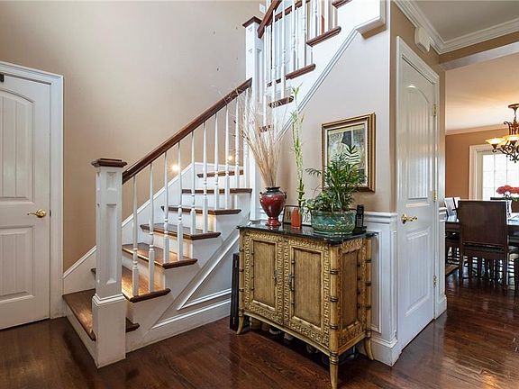 Modern day amenities, high end finishes, and expansive views of the East Bay Passage from each floor bring tranquility to a new level. In 2008, this three-story home with three fireplaces was re-built from the ground up. New heating system, central AC, plumbing, and electrical. Mature landscaping with fire pit, above ground heated pool, and all Trex decking creates a private oasis. Fully fenced (vinyl) back yard and large driveway with one-car garage completes the curb appeal. Pride in home ownership is evident with the appliances and Franke Farmer's sink. An inviting open floor plan, trendy light fixtures, gleaming hard wood floors, and first floor full bath with Jacuzzi tub. Second floor bath includes heated flooring and a large whirlpool jacuzzi tub. This home is comfort living & fun for entertaining. Additional and impressive features include a master walk-in closet with wood closet cabinetry and shelving & gas fireplace, brass hardware, crown molding, baseboard, and wainscoting trim through the home. Interior wired speakers, security system, ceiling fans, stair lights, motorized water detecting skylights, Vermont Castings wood stove, and finished basement concludes this three bedroom & two full bath Colonial. Cozy setting with a gas fireplace on the main floor and multiple heating zones, utility costs will be low so the magnetic dog door can be used year-round! Availability date can be sooner upon aproval.