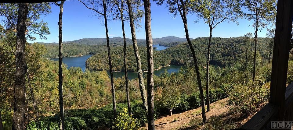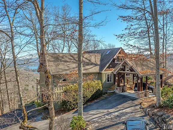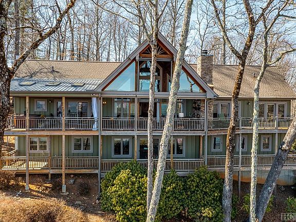 Just over the rainbow, this custom built home has ever changing awe-inspiring views from one end of Lake Glenville to the other! Expansive panoramic 180 degree views from the oversized covered porch w/stone wood burning w/gas starter fireplace, dining area, hot tub & motorized remote controlled clear blinds for year round use. Every bedroom, living room, kitchen, & game/theatre room has an unobstructed view of the lake. Absolutely exquisite heart pine floors, mantle & ceiling beams are from a 100 year old cotton warehouse. Living room has a beamed cathedral ceiling & a stunning stone gas fireplace flanked by built-ins. 3 bedrooms on the main level (split plan), open living/dining/kitchen plan. Lower level has partial kitchen, another bedroom & a 'bonus' bunk room. Ample storage, elongated garage for a boat & 2 workshop areas, lightning protection & security alarm systems, & a porte cochere for covered entry. Selling mostly furnished- including hot tub, pool & ping-pong tables. This small gated friendly neighborhood has paved roads & its own community center for potluck dinners, a playground & a basketball court. Original owners -first time on the market & priced to sell! Lake Glenville is a popular tourist destination and is the highest elevation lake east of the Mississippi River, with 26 miles of shoreline covering over 1,400 acres surrounded by beautiful mountain peaks. Enjoy water skiing, tubing, fishing, paddling, and more on this picturesque mountain lake. This home location is equidistant between the charming towns of Cashiers, Highlands, Franklin & Sylva.