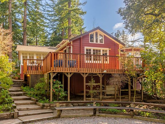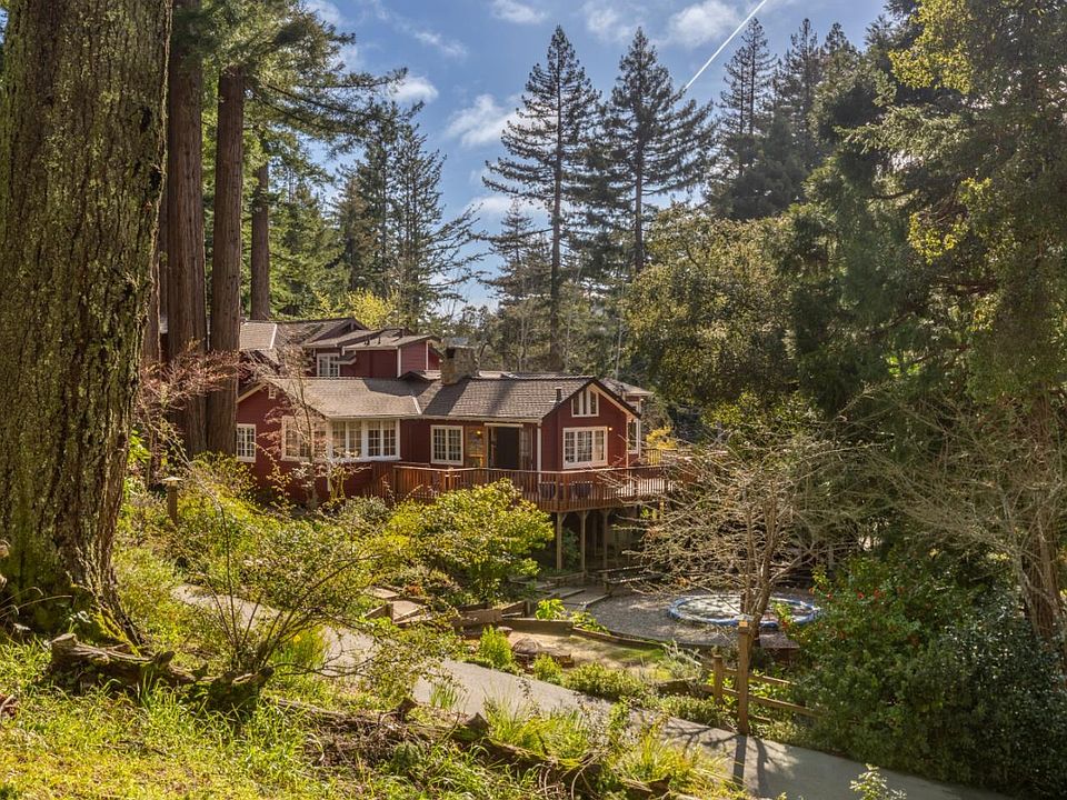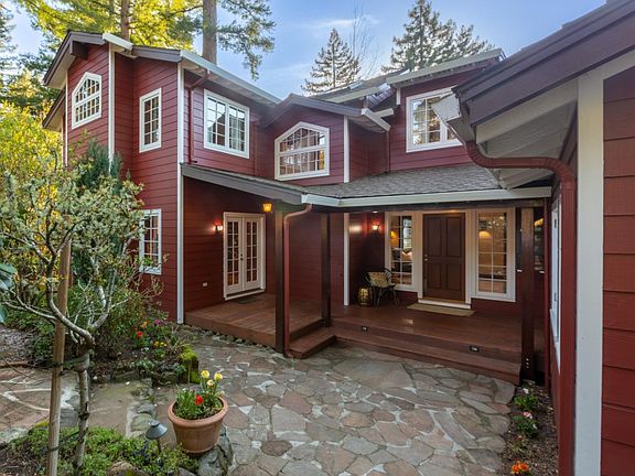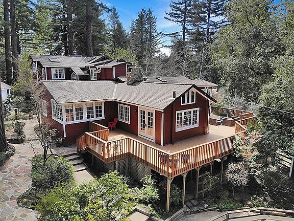This exceptional home is situated on approx. 3/4 +acre, sunny usable lot and designed for indoor/outdoor living. Established natural landscape infuses the home through soaring windows, many skylights and French doors. The effect leaves one feeling far away from the hustle and bustle while just minutes from the Peninsula. Ideal for family living and entertaining. The gourmet kitchen is the heart of the home with an abundance of cabinets, extra-large center island, AGA stove and sun-filled eating nook. Open floor plan seamlessly connects the kitchen to living room on one side and cozy family room on the other. The large master suite found upstairs is a restful oasis with French doors and a private deck looking to the beautiful setting, spacious walk-in closet, and dreamy master bath with tub and sep. custom shower. Outdoor living at its finest with expanses of decks and garden sitting areas graced by majestic redwoods and established landscaping. Desirable Woodside/PV schools