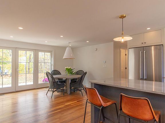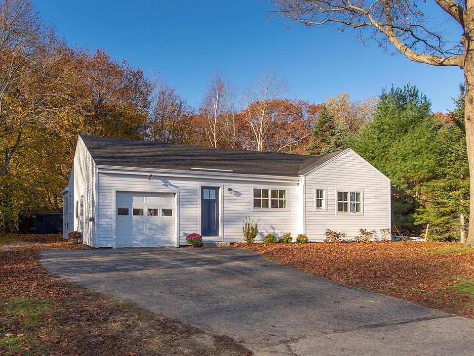 Excellent Yarmouth village location! This well-built 1950's ranch has been completely renovated with energy efficiency and modern, low-maintenance living in mind. The house was gutted and rebuilt along with a new addition. The updated floor plan maximizes natural light and flow. Enjoy one-level living with a first floor primary with en suite, a sun-filled living room with gas stove, a second bedroom or home office, and washer/dryer all on the main level. The kitchen features custom cabinetry, a large island and natural quartzite countertops. Relax on the back deck overlooking the beautiful, private back yard. The basement offers plenty of space for storage. House newly insulated as well as all new exterior Zip-R sheathing and new siding. The added insulation, new windows and doors, heat pump, induction range and EV charging outlet provide energy efficiency and year-round comfort. This desirable location is just off West Main Street near Yarmouth's vibrant town center, with shops, restaurants, and the beautiful Royal River Park and schools just minutes away.