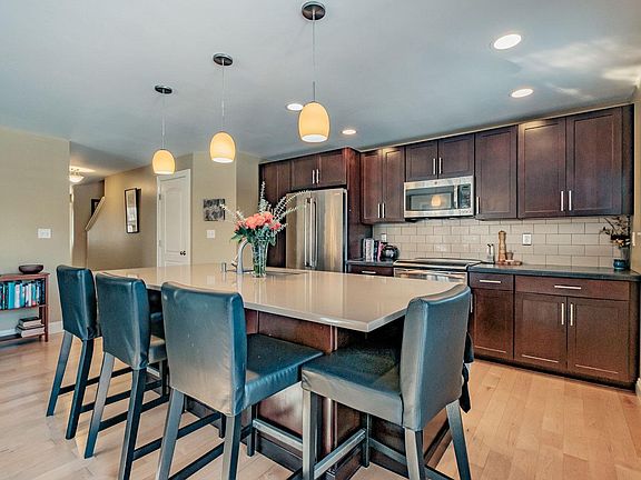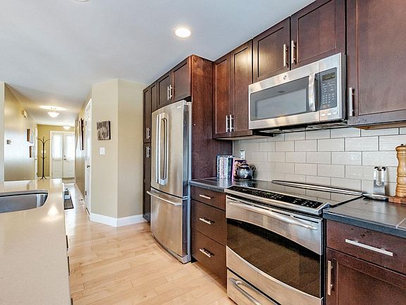 Enjoy the open concept in this beautifully furnished, end unit condo. Kitchen includes custom cabinetry, stainless appliances including refrigerator, dishwasher, microwave and oven, and large island with seating for up to six. The kitchen is open to the living room which features a wonderful gas fireplace and is perfect for entertaining. The first floor also features a one car garage, a half bath, and sliding glass doors to private deck overlooking a tranquil common space. The second floor features a laundry room equipped with a washer and dryer. Master bedroom has a king size bed, walk-in closet and bathroom featuring a large walk-in shower. In addition, there's a second bedroom with a queen size bed and a guest bathroom. Located in the Northgate area of Portland, this condo has convenient access to Portland, Westbrook, and Falmouth, as well as I95 and I295. Amenities: Bedroom Accommodations: Bedroom 1: Queen Bedroom 2: Full Gourmet Kitchen: Custom Cabinetry Plenty of Cabinet Space Fully Stocked with Cooking Essentials Hardwood Floors Stainless Appliance Bar Seating for 4 Luxury Master Bath: Glass Enclosed Tiled Walk in Shower Vanity with Storage Below Amenities throughout the Property: Hardwood and Tile Floors Throughout Gourmet Kitchen One Car Garage Private Deck