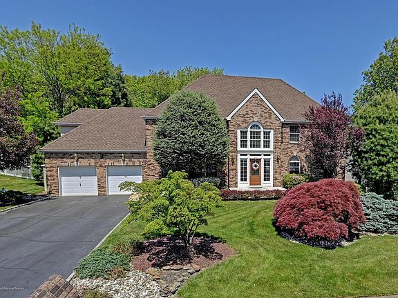 NYC Commuters Delight !!! Welcome to 36 Somerset Pl located in a highly sought after neighborhood of Matawan. This beautiful 3600 sq ft full brick front Center Hall Colonial situated on a cul-de-sac. Enter through the double entry doors to a two story foyer with circular staircase and ceramic tile. Home features 4/5 bedrooms, 2.5 baths, large playroom/den , Large family room with wall of windows, double skylights, wood burning fireplace, cathedral ceilings and wood beams. kitchen has stainless steel appliances and multiple doors leading to a oversized deck overlooking the serenity of the private treed yard. Large master bedroom, Newly finished master bath with frameless shower, soaking tub and double vanities. Wood flooring, decorative moldings, Full basement with high ceilings.