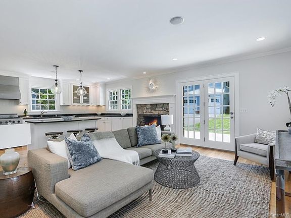 Fresh & stylish home ideally located in sought-after Sasco Hill neighborhood, nestled between town & beach. Inviting front porch complete with swing, welcomes you to open floor plan living. Kitchen with Viking appliances & center island flows to family room with fieldstone fireplace. French doors open to sunny bluestone patio overlooking level yard. Master bedroom with large walk-in closet, master bath with marble finishes & glass shower. 3 additional bedrooms, plus office or 5th bedroom. Newly built 400 sf bonus room over 2 car garage with heat/ac, hardwood floors & vaulted ceiling. Ideal location for game room, playroom, studio or office. Very special home on fantastic street! Less than a mile to Sasco & Pine Creek beaches, train, golf, tennis, scenic Southport harbor & vibrant Fairfield town center. No flood insurance required. Don't miss this one!