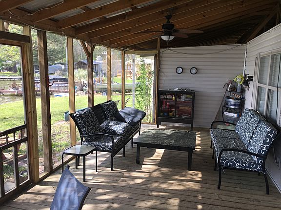 Fully renovated and furnished 3 bedroom 2 bath manufactured home on Spring Creek at Lay Lake, on a level lot with a beautiful view of big open water. Relax on the expansive screened porch that features two ceiling fans and a wide screen TV, or take a few steps to the water, where you will find a large pier and concrete sea wall. Inside your new vacation home you will find hardwood flooring, all new drywall, newly renovated kitchen and bathrooms, new HVAC, and new roof, all within the last five years, and newly painted inside and out. Store your skis and wakeboards in the utility building. This home is on a leased lot, $3295 per year.