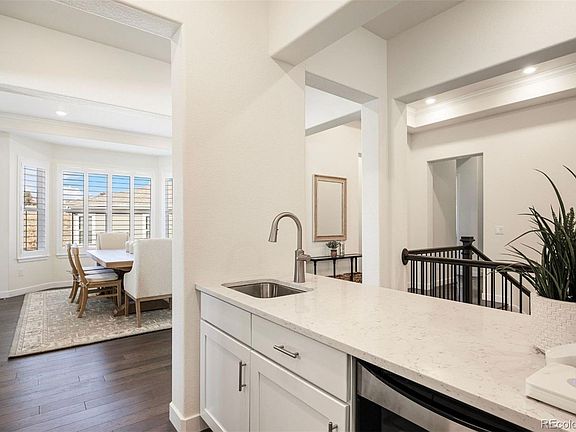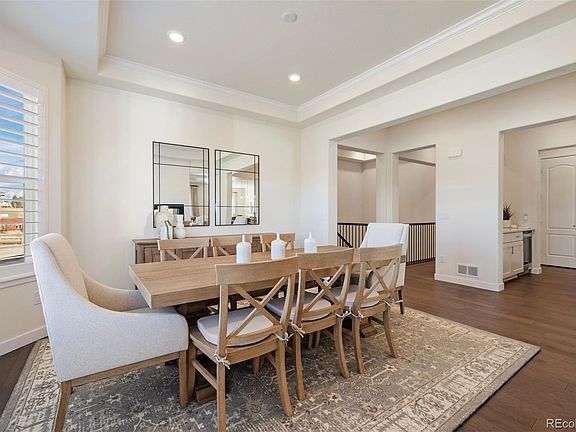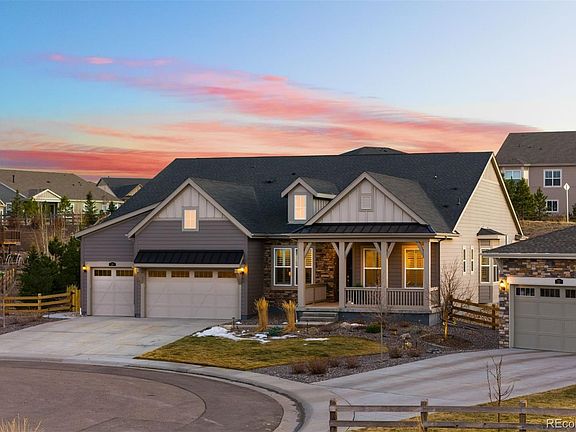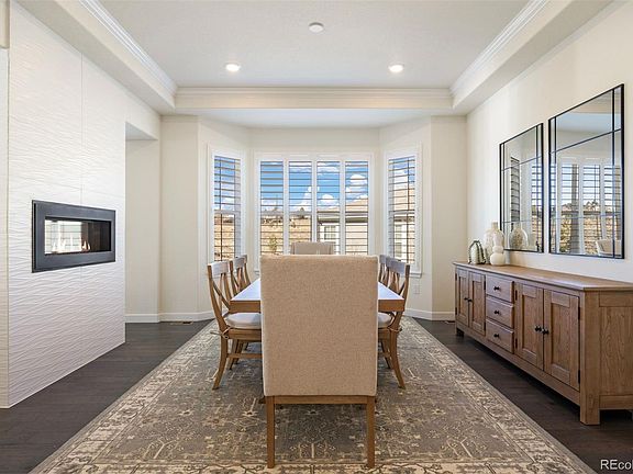Offering an ideal blend of elegance and modern convenience and located in the heart of Castle Pines, this thoughtfully upgraded and meticulously maintained 3 bed | 4 bath ranch-style residence boasts soaring 9-foot ceilings and expansive windows, creating an ambiance of timeless luxury. The open concept living area features a bright family room with striking coffered ceilings, and is seamlessly connected to the formal dining room by a sophisticated dual-sided gas fireplace. The chef’s kitchen showcases a stunning quartz island, GE Monogram appliances, custom cabinetry with glass accents, a built-in refrigerator, and designer finishes. The sprawling primary suite is a serene escape, complete with a private sitting area—ideal as a reading nook, media lounge, 2nd office, or fitness room. The luxurious primary bathroom features unique dual walk-in showers with frameless glass enclosures, sleek tile work, and separate vanities. Two additional en suite bedrooms provide privacy and comfort, each with its own well-appointed bathroom. Enhancing the home’s functionality is a well-placed wet bar | butler pantry, complete with a wine cooler and custom cabinetry. Additional highlights include plantation shutters throughout, smart home wiring, central air, a whole home humidity control system, a powder room, a convenient mudroom, and a spacious main-level laundry room. The full unfinished basement offers endless possibilities for customization. Step outside to discover an outdoor retreat, including a private covered deck off the family room and a charming patio. Current owners added professionally landscaped grounds and trees, fencing, security system, and water circulation pump which enhances the home’s tranquil appeal. Perfectly situated within walking distance to American Academy, easy access to shopping, retail, and restaurants, top-rated schools, and I-25, this exceptional residence offers a rare opportunity to experience elevated living in a highly desirable location.