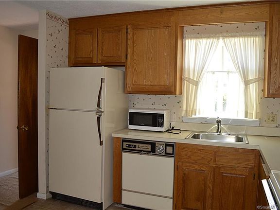 Rarely available townhouse that backs up to tree line for more privacy in charming complex convenient to everything. Open concept with fireplaced living room with access to rear deck. Newly remodeled main bath and two spacious bedrooms on upper level. Numerous closets for storage as well. Basement has lots of storage space. Spend your summers by the inground pool UCONN and I-84 are in close proximity. Being sold AS IS.