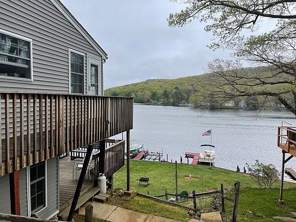 Waterfront home on fully recreational Hamilton Reservoir. With 3 bedrooms, there's plenty of room for everyone—beautiful views from the enclosed porch and large deck. The waterfront has a large flat area with plenty of space to relax, play games or go for a swim. Bring your boat as docks are included. Home has been updated with newer windows, doors and central AC. Sold partially furnished. Sale includes lot #24 (across the street) for extra parking, and deeded rights to Lake Association boat launch. Boat and Jet ski lifts are not included. Estimated Tax & Assessments based on combined Public Records data for both parcels.