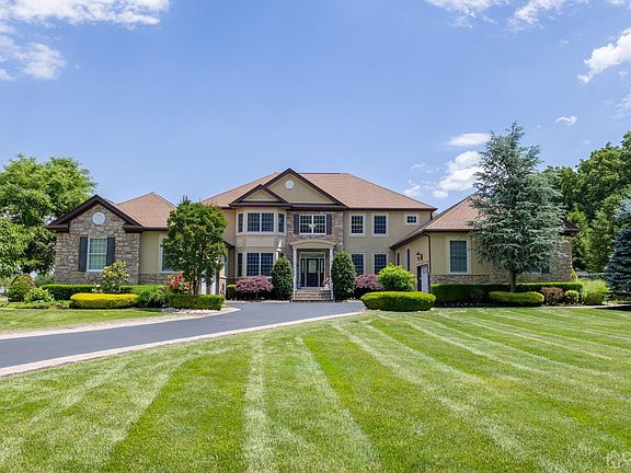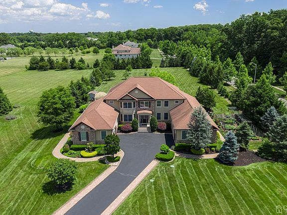 Welcome to 36 Summit Dr, an exquisite home zoned for South Brunswick Township schools! Nestled in the coveted Dunhams Farm Estates neighborhood, this beautifully appointed residence sits on a private 2 acre lot. A two-story foyer welcomes you into this sunlit home, guiding your gaze to the expansive backyard through the double-story formal living room. To your left you will enter an exquisite dining room with ample space to host a large dinner party. The sprawling kitchen, a chef's dream, boasts 42-inch cabinets, abundant counter space, a center island, stainless steel appliances, a walk-in pantry, dining nook, wet bar and custom-made organizers for the drawers and spice cabinet. The kitchen opens to the spacious, bright and airy family room providing a fabulous space for entertainment and featuring a gas fireplace. The formal, two-story, living room also boasts a two-sided, gas fireplace, shared with the main level home office. Down the hall the first-floor primary suite features double walk-in closets and a luxurious ensuite with a double vanity, walk-in shower, spa tub, and separate water closets. This level is complete with an oversized laundry room, powder room and walk-in coat closet. Upstairs, you will be greeted by an open, sun-drenched walkway, leading you to a princess suite, with walk-in closet and dedicated attached ensuite. Down the hall are two other well-appointed bedrooms with walk-in closets, sharing a hall bathroom with double vanity. This level is complete with an open-air loft, which can be used as a home office, additional tv room, play area or it can easily be converted back into a 5th bedroom. The fully finished, one year old, basement offers an open concept design with high ceilings and stunning dcor! This space has a personal gym, yoga sanctuary, kitchenette with stainless steel appliances, including a refrigerator, dishwasher, microwave and warming drawer. There is an abundance of space for entertainment, and you can sing and dance the night away on the karaoke stage and dance floor! The stunning bar with a center island with seating overlooks the comfortable sitting area, the perfect place to watch an afternoon game with friends and family! Complete with a half bathroom and built in electric fireplace, not one detail was missed when this space was designed! Outside you will enjoy the beautifully landscaped and meticulously maintained gardens. The paver walkways guide you around this exquisite home and the patio was designed to allow for a large dining area, as well as a sitting area providing endless options for everyday use and larger functions. Tucked away off the home office there is another covered, private paver patio, perfect for a personal conversation or morning coffee. Additional features include a 20-zone sprinkler system, hardwood floors throughout the main level and primary suite, a premium home security system, and a 3-car garage. NYC commuters will appreciate the nearby express train service.