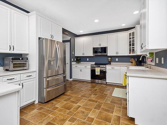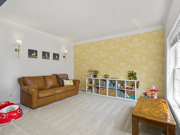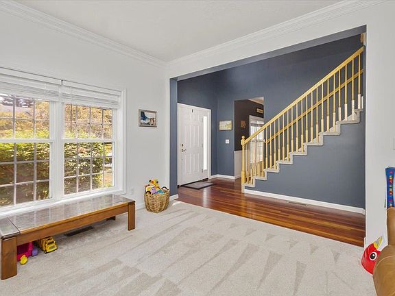 *OPEN HOUSE CANCELED*Welcome to this lovingly cared for 4-bedroom Colonial, nestled on a level lot in desirable Greenfield Farms. From the moment you arrive, you're greeted by a covered front entrance and a soaring 2 story foyer that set a warm and sophisticated tone. Inside, you'll find a thoughtfully designed layout featuring a blend of gleaming hardwood floors and newer carpet throughout. A flexible floor plan offers rooms perfect for a home office, formal dining room, playroom or cozy den. The heart of the home is a bright, open kitchen with an eat-in bump-out area, new appliances, and generous cabinet space. The kitchen flows seamlessly into the spacious family room with a gas fireplace and a slider that opens to a maintenance free deck ideal for relaxing outdoors. Convenience is key with a first-floor laundry room that includes a new washer & dryer and an updated ½ bath on the main level. Upstairs, the serene primary suite offers a private retreat with a walk-in closet, luxurious jetted tub, double vanity, and separate shower. Three additional well-sized bedrooms share a full hall bath. The clean and spacious basement offers excellent storage and great potential for future living space. Recent improvements include fresh paint, tasteful wallpaper accents, new carpeting, and a new A/C unit, making this home truly move-in ready.