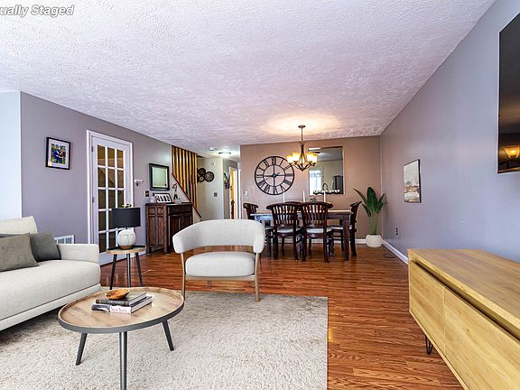 Welcome home to this rare find 3 bedroom 1 1/2 bath townhouse with 1 car garage at Harris Pond. Entryway has brand new flooring and leads up the staircase to the main floor. The 1st level has an open concept living/dining area which is great for entertaining. The glass slider leads to the deck and backyard. Love to cook? The kitchen, has spacious cabinetry, S/S appliances including a gas range, and pantry. Half bath completes the 1st level. The 2nd level includes 2 bedrooms and 1 full bath. Primary bedroom is serene featuring 2 closets and a door that leads directly into the full bath. The 2nd bedroom is bright and includes a large walk in closet. At the end of the hall is the laundry room with laundry hook-ups. Head up to 3rd level with an additional bedroom or great office space with a skylight and closets. Additional storage in the utility room in the garage with an additional refrigerator is included. This unit is not to be missed! Great commuting location and close lots of shopping. Schedule your showing today! Quick closing possible!