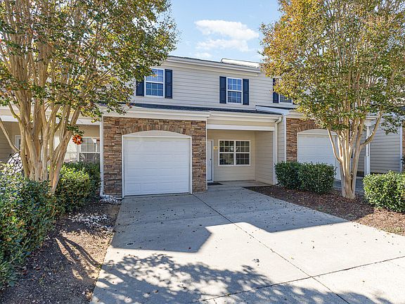 Welcome to your new home in Boling Townes Subdivision! This charming two-story townhome features 3 bedrooms and 3 bathrooms. This freshly painted unit opens into an large entry foyer which leads into a spacious living room with brand new LVP flooring and abundant natural light. The kitchen boasts beautiful granite countertops and ample cabinet space, overlooking a large dining room with vaulted ceilings—perfect for entertaining. Upstairs, the generous primary suite includes an ensuite bathroom with dual vanities. You'll also find a laundry room and two additional bedrooms, ideal for family, guests, or a home office, all with brand new carpet. The attached garage and patio closet provide extra storage. Plus, enjoy the community pool and convenient access to shopping, dining, and activities in Clayton. Don't miss this fantastic opportunity!