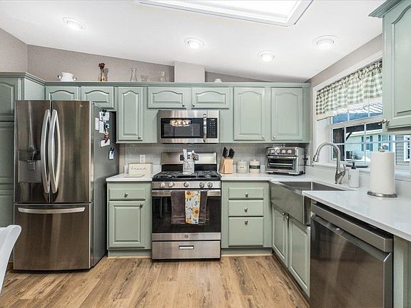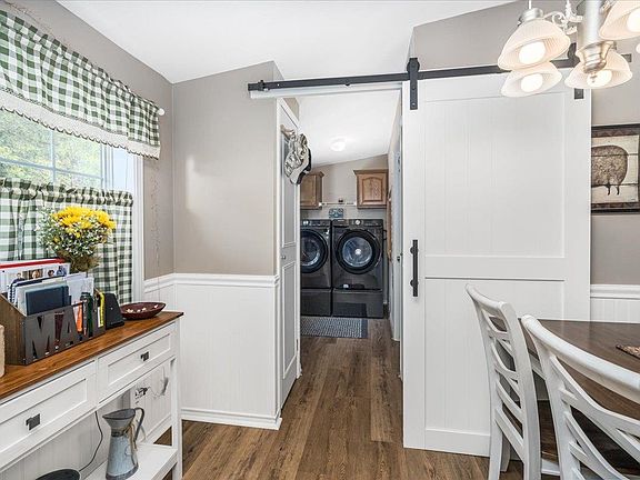 UNDER CONTRACT! OPEN HOUSE CANCELLED!!!!!!!!Step inside this beautifully updated 55+ Community home and fall in love with the heart of the house—the stunning remodeled kitchen. This chef’s dream features quartz countertops, a modern tile backsplash, professionally painted cabinetry, a farmhouse sink with a sleek new faucet, stainless steel appliances, and charming beadboard accents. Whether you’re preparing meals on the gas stove or enjoying coffee at the stylish new coffee bar, this kitchen is designed to impress. Beyond the kitchen, the entire home has been thoughtfully upgraded with comfort and style in mind. You’ll appreciate the new luxury vinyl plank flooring, fresh beadboard accents in the living room, and updated barn doors in both the kitchen and primary bath. The home also includes modern ceiling fans, a widened double driveway, and a convenient washer and dryer set. Outside, enjoy the ultimate in relaxation and entertaining with multiple new porches, a spacious back deck, and an aluminum canopy that creates the perfect shaded retreat for outdoor seating and gatherings. Whether it’s morning coffee on the kitchen porch or an evening with friends under the covered deck, this home’s outdoor spaces are as inviting as its interiors. Major systems add peace of mind with newer furnace, AC, hot water tank, and roof. This is a home where style meets substance—every detail has been cared for so you can simply move in and enjoy.