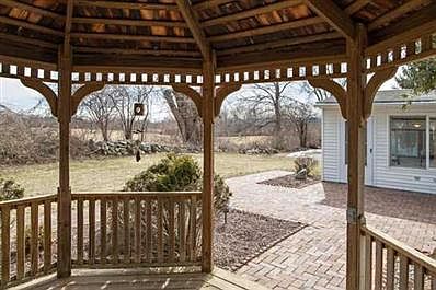 Charming Cape on parklike property w/beautiful views.Large LR w/FP,DR,kitchen,sunlit family room & den,large glass windows w/door to patio and Gazebo.Relax & enjoy the view. 1st floor MB w/half bath. One full bath on 1st floor. 2nd floor has 2 full BRs with access to unfinished attic. 1 car attached heated garage w/washer/dryer, central vacuum, door to outside. Oversized 2 car detached garage with great potential for add'l cars,workroom, etc. Sellers will offer $3,000 to buyers at closing towards property taxes, will be grieving property taxes.