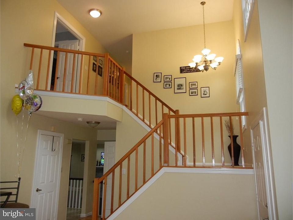 The exterior charm and architectural elements of this lovely home gives a very appealing view as you arrive for the first time. From the covered porch you enter the foyer and are drawn in by the soaring living room ceiling with two skylights and the elegant multi-landing turned staircase with balcony overlook and an abundance of light and volume with multiple windows and large chandelier. Your guests will be impressed. To your left is the spacious living room with a quadruple window, recessed ceiling lights, hardwood flooring and another double floor to ceiling window flanked by a formal dining room, with hardwood floors, double window and upgraded lighting fixture. The oversized kitchen boasts upgraded light wood cabinets, ceramic backsplash, and refrigerator, gas range, dishwasher and microwave. A large dining area with patio doors to the deck and rear yard gazebo, along with wood railings leading to the step-down family room complete the kitchen. The family room is bright with a brick wood burning fireplace, hardwood floors, recessed lighting, double window and exterior door. The laundry room with garage entrance and the powder room are accessed via an alcove adjacent to the family room. The second floor boasts a balcony, master suite with oversized closet and master bath with a new upgraded vanity, new flooring and a soaking tub perfect for relaxation after those long days at the office. The hall bath also was recently upgraded with new flooring and an upgrade double sink vanity. The long hallway leads to the other three bedrooms including one that is used as a home office. There is also a full finished basement that contains room for billiards, table tennis or a home theater. There is also an "L" shaped wet bar with tiled top, wood accents, overhead wine rack and an area next to the wet bar for a card table or dining table perfect for parties or gatherings. Replaced in 2012 were the roof, vinyl siding, heater, hot water heater and refrigerat