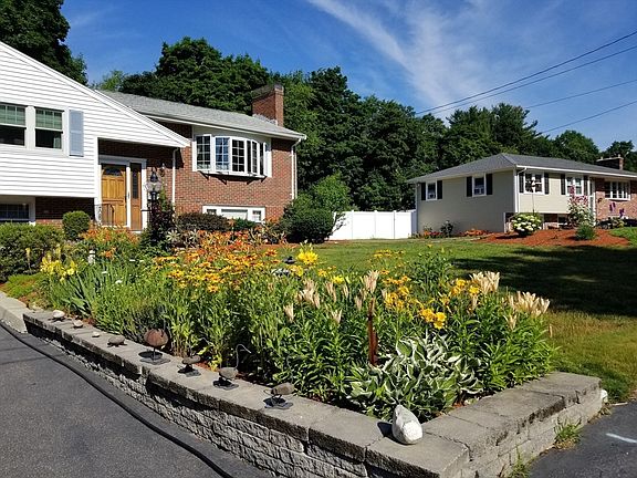 This very well maintained and beautifully landscaped Raised Ranch is move in ready. Situated on a child safe, quiet cul-de-sac in a very convenient location. Eat in Kitchen with Gas Stove, Ceramic Tile Floor and Recessed Lighting. Refrigerator to Remain. Spacious Living Room features full brick wall Fireplace, large bay window, and built in planter for all your houseplants. 3 season Sunroom/Porch with casement windows for maximum breeze exits to newer deck. 1st floor Full Bath has been updated. Lower Level offers 2 room in-law or teenage suite with Kitchenette, Full Bath, and 2nd Fireplace. Newer Naveen Gas Boiler with tankless hot water. This home is a gardener's paradise, from the awesome vegetable gardens to the spectacular front floral display. Paving stone patio at bottom of deck extends the outdoor living space. Storage Shed/Man Cave includes a working wood stove. Pet safe fenced back yard. Short path to Braintree High School at end of cul-de-sac.