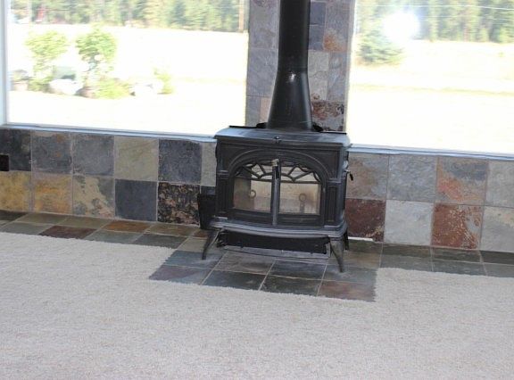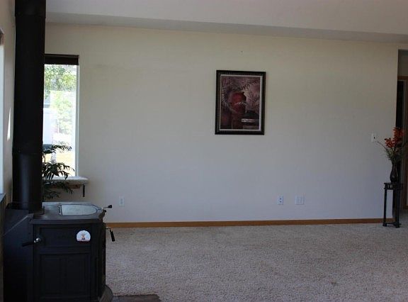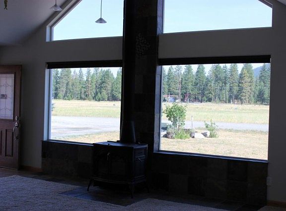 Beautiful single story, 4 bedroom, 2 bath home on a large acre lot, in a desirable Moyie Springs location. Option to purchase adjoining acre gives you lots of flexibility. This home is move-in ready with many upgrades throughout. Spacious vaulted ceilings and windows (with security one way UV film) capture the serene mountain views. Enjoy a hot fire and relax on the plush NEW carpeting. A customized kitchen with stainless steel appliances, kitchen island and beautiful wood cabinets offer plenty of storage, including a glassed pantry room. The comfortable master bedroom suite is complimented with an oversized master bathroom. An enormous CUSTOM tiled shower, dual vanities, large walk-in closet with ample shelving space. Three car attached garage. Large mud and laundry room. Backyard fenced garden & orchard. NEW Carpet. Wood shed with attached room with pellet stove, and an extra barn style shed with wood stove.