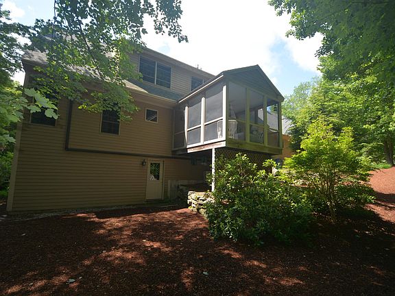 This Eastman home is impeccably maintained and it shows from the second you see it. There are lovely gardens, beautifully bark mulched yard and surroundings and a trail leading directly to the hiking and cross country ski trails. The roof is just a few years old and cement board siding and trim make for a low maintenance. The home gives you great southern exposure, the rooms are filled with natural light. Pella window are throughout the home, that is a huge bonus. Other bonus features are a standby generator, whole house fan for cooling and a screened porch you wont want to leave. The interior is set for one floor living, just two steps up from the garage, the laundry, kitchen and primary BR are on the main floor, along with LR, DR, family rooms and the screened porch. The primary has a large bath with soaking tub and separate shower along with a huge walk in closet. Not to forget there is an office on the main floor filled with desk space and shelving. The second floor has a nice loft, two large bedrooms and a full bath. One bedroom has a walk in closet and access to the attic storage area. The basement is currently unfinished but there are plenty of options and there direct access to the back yard. Eastman is a four season community that offers something for anyone of any age. From the 345 acre lake, 6 beaches, golf, tennis, pickle ball, cross country skiing, hiking, biking, indoor pool and fitness center, it's all right here. Delayed showings till open house 6/24 11am-1pm