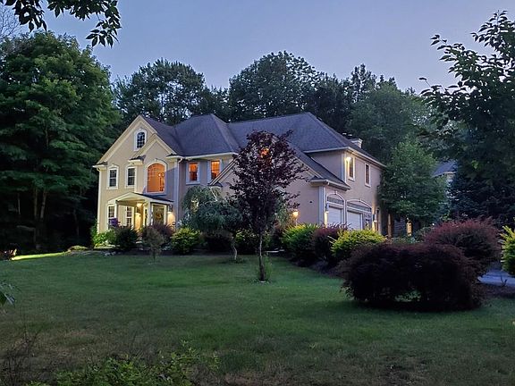 Distinguished "Builders Own" Colonial style home built for entertaining but w/family in mind. Private circular driveway bordered w/custom built stone walls. Grounds equipped w/security camera system. After your grand entry w/ designer foyer light, the main house boasts beautiful HW flooring on 1st flr, an open floor plan w/4,210 sq. ft. (incl'd 840 sq. ft.) fin base, 4 BR, 2Full BA & 2 1/2 BA's. Large chef's style kitchen w/granite countertops and honey maple cabinetry eqp'd w/center isle down draft cooktop, separate wall oven & speed cook microwave. This kitchen has it all as well as a casual eating area and also open to the sunken living room w/limestone FP surround. 2 separate sliders to the large covered composite deck overlooking the back yard completed w/built in propane grill station. A few of the many custom designs are crown molding through entire 1st flr, tray ceilings in office & formal dining room w/built in lit wine display and many designer inspired fixtures. Large MB suite with double vanity granite counters, jacuzzi whirlpool tub and tiled double shower w/heated floors in Master bath. Separate reading/exercise room as well as large walk in closets. Finished basement area consist of separate wet bar area with double tier granite counters. 3 zone Nest thermostat system and much, much more.... Detached additional 3 car garage w/office space and approx. 1,000 sq. ft. 2 BR, 1 BA in-law apartment space above. Total of 5 garage spaces! This is a must see property.