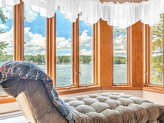 RARE WATERFRONT CUSTOM-BUILT HOME ON COBBETT'S POND. This Stunning Home includes a 2-Car detached garage equipped with a custom elevator leading to a walk out workshop, making storage & organization breeze. Step outside and be transported to paradise w/a charming covered veranda & custom patio boasting breathtaking water views. Step through a custom made door into a large open-concept main floor featuring a Chef's Dream Gourmet Kitchen, complete with large island overlooking the Pond, Custom Cabinets, Corian Countertops & Custom Backsplash. Enjoy cooking with top of the line appliances, including Subzero refridgerator & 6 Burner Thermador Prof Range. The Kitchen opens into a Custom 3- Season Glassed Room and an outdoor cooking area perfect for entertaining guests. The expansive deck extends out to the waterfront, providing the ultimate setting in relaxation. The main floor is complete w/a Custom 1/2 bath, 3 sided fireplace & custom entertainment center with a 4foot staircase and soaring custom wood ceilings.Take the beautiful staircase to the 2nd floor, which boasts a primary suite plus 2 additional bedroom and 2 custom baths. The Primary features a dream walk in closet, tray ceiling & breathtaking views. The en-suite is completed with custom cabinetry and an 8'6" custom tiled shower! Laundry is conveniently located on 2nd floor. The third floor offers a finished loft & storage area providing ample space for all your needs.Enjoy NH's tax advantages & all So NH has to offer!