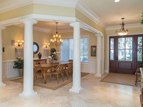 What a house. Every upgrade you can imagine. Travertine floors throughout. Custom Kitchen with Upgraded Cabinets, Granite Countertops, large Bar Area, and Viking and Subzero Appliances. The custom trim work is some of the best anywhere. House is open and great for entertaining. Has a media room to enjoy. There are too many upgrades to mention and it is furnished. Needs to be seen. Large heated pool and Spa with Golf and Lagoon Views. This is a must see since it is Sea Pines at its best. Walk to Harbourtown This house would be a great investment/rental property or vacation home.